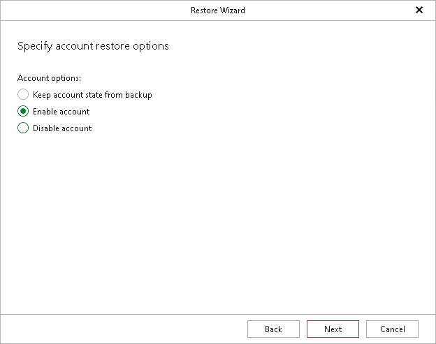 • Keep account state from backup — to keep the account state as it is in the backup file.
