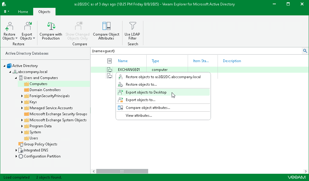 Alternatively, you can right-click a container or an object and select Export container to <target_folder> or Export objects to <target_folder>.