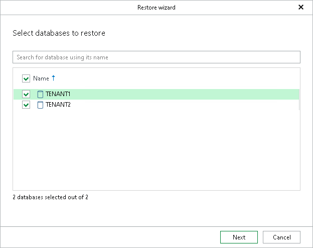 To quickly find the necessary databases, use the search field or sort the databases by name.