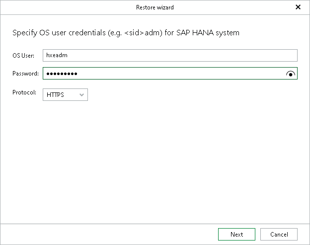 - In the Protocol drop-down list, select the protocol that Veeam Explorer for SAP HANA will use to connect to SAP Web Services, which are then used to control the target SAP HANA system.