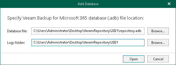 Adding Veeam Backup for Microsoft 365 Databases
