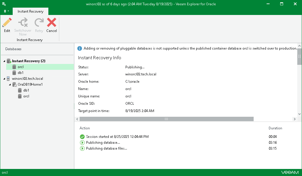 Depending on the option you choose in the Instant Recovery wizard, switchover starts in one of the following ways: