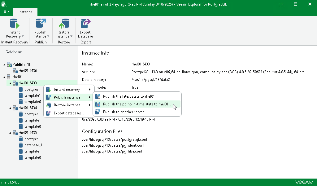 - In the navigation pane, select a PostgreSQL instance you want to republish.