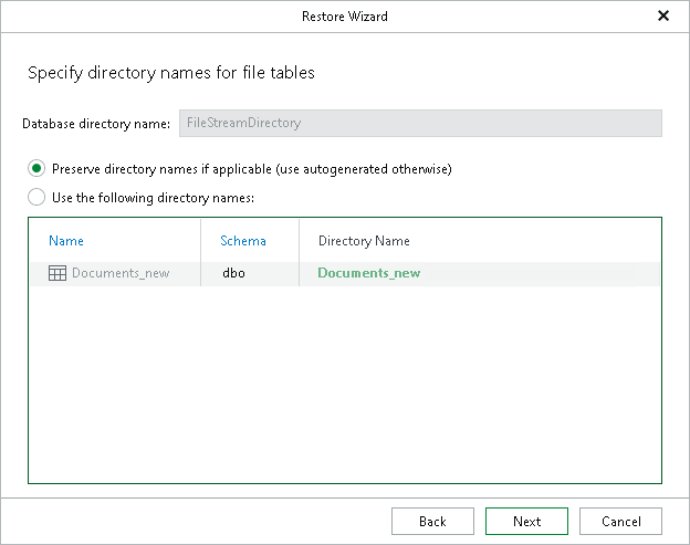 If such names already exist on a target server, Veeam Explorer for Microsoft SQL Server will add _new suffix to each name. For example, <existing_name>_new.