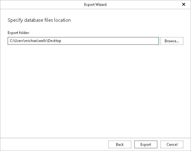 Step 4. Specify Export Location At this step of the wizard, specify a path to the directory where you want to export database files and click Export.Click Browse to specify the path manually.