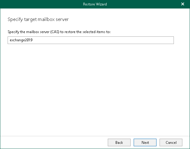 Step 4. Specify Target Mailbox Server At this step of the wizard, specify the DNS name or IP address of the target server to which you want to restore mailboxes.