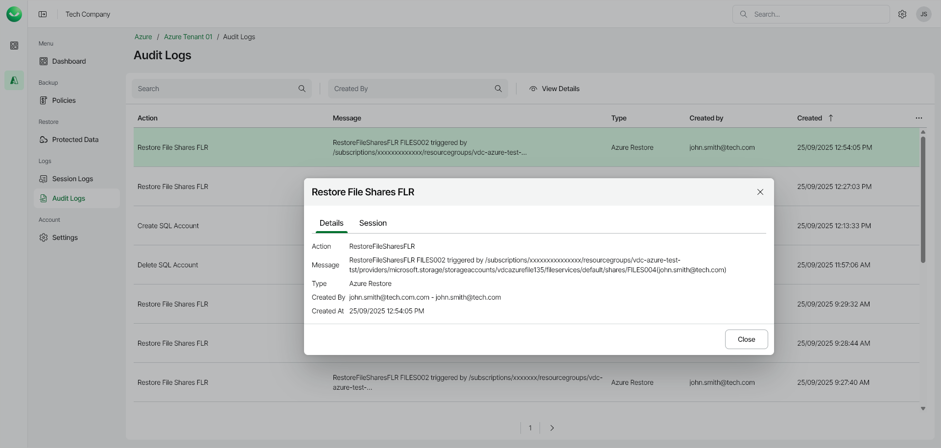 Viewing Audit Logs To view the list of all user actions, open the Audit Logs page in the Logs section of the main menu. To view user action details, right-click a selected action and choose View Details.