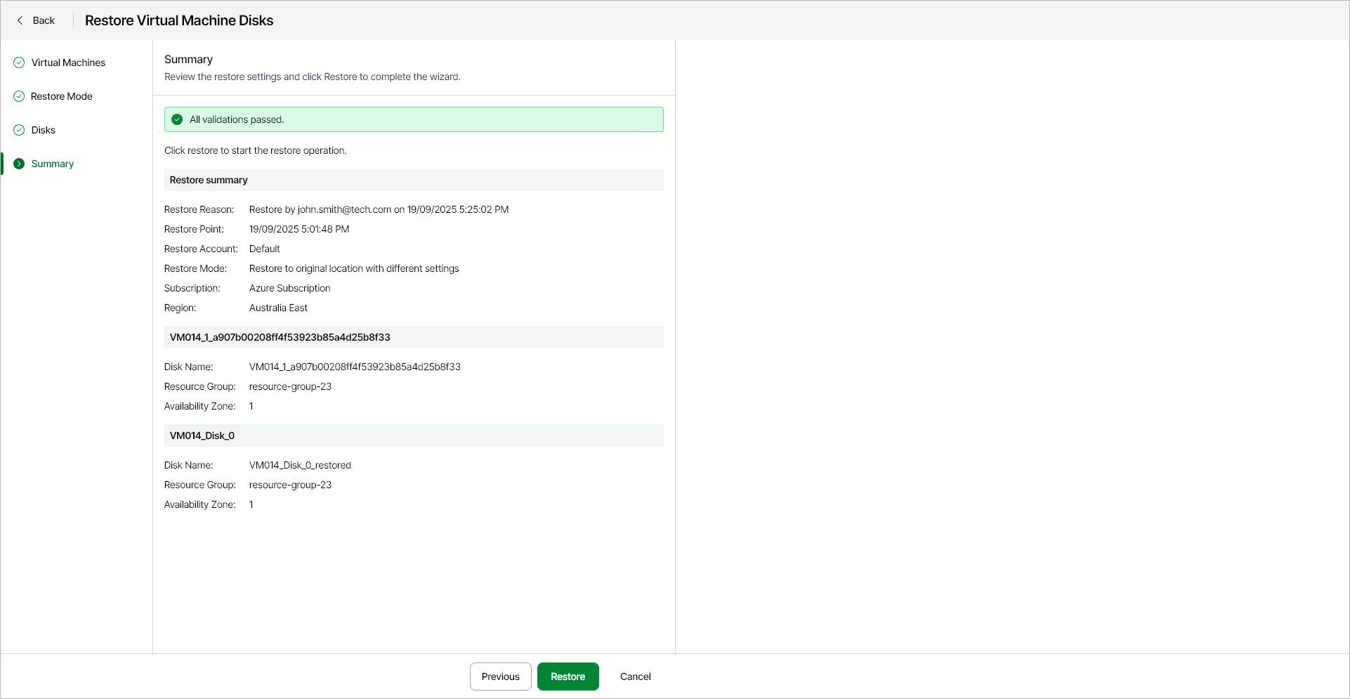 Step 5. Complete Restore Process At the Summary step of the wizard, review the summary information and click Restore.