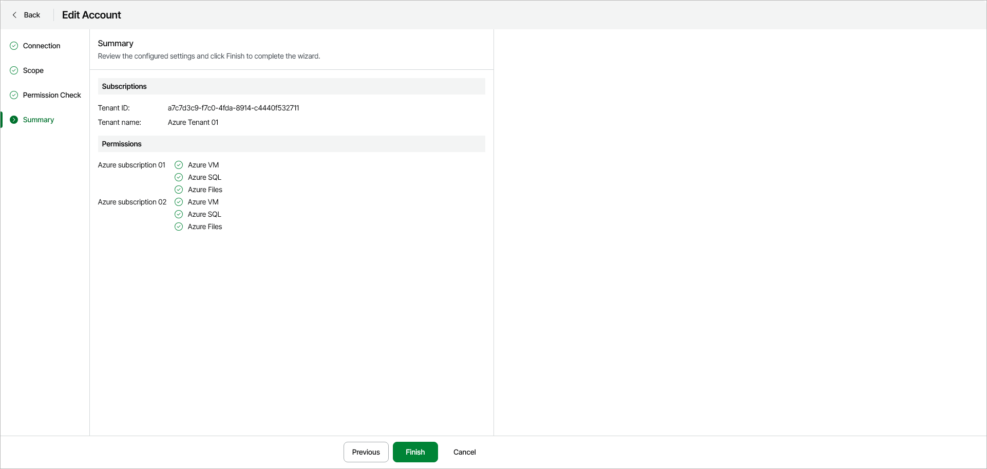 Veeam Data Cloud for Microsoft Azure will launch the Edit Account wizard.