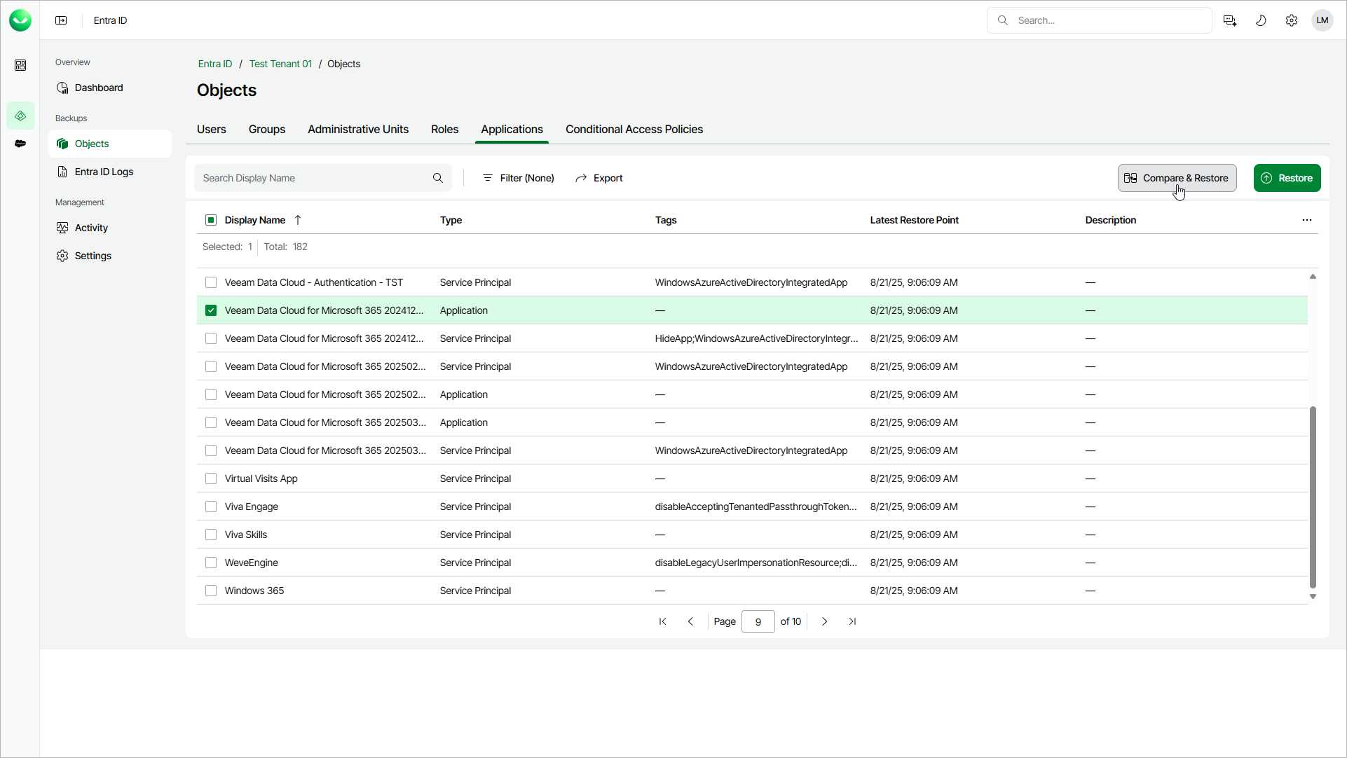 - On the Entra ID page, click the name of the tenant you want to manage.