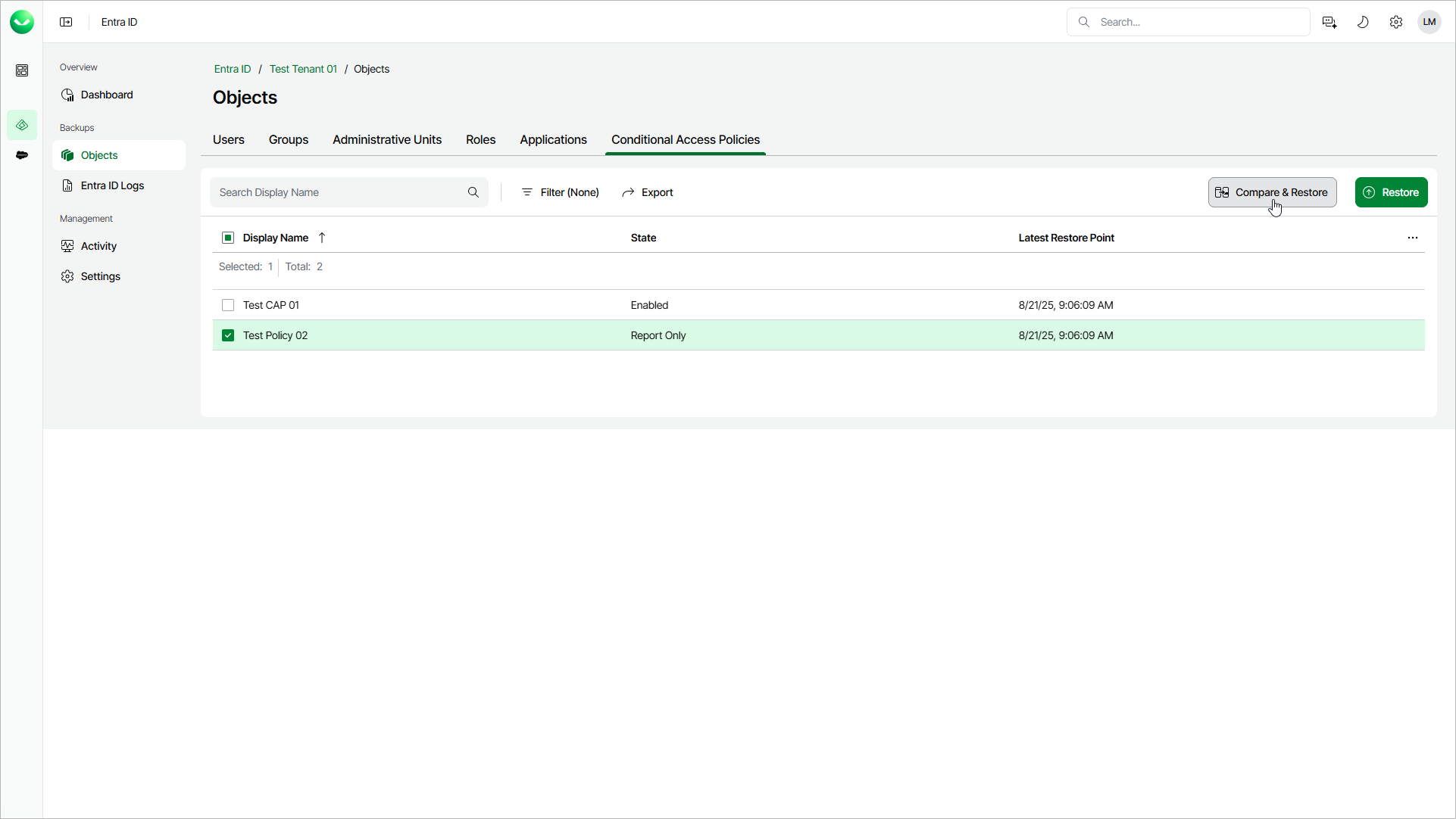 - On the Entra ID page, click the name of the tenant you want to manage.