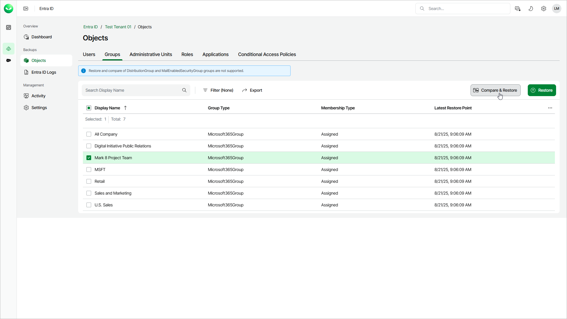 - On the Entra ID page, click the name of the tenant you want to manage.