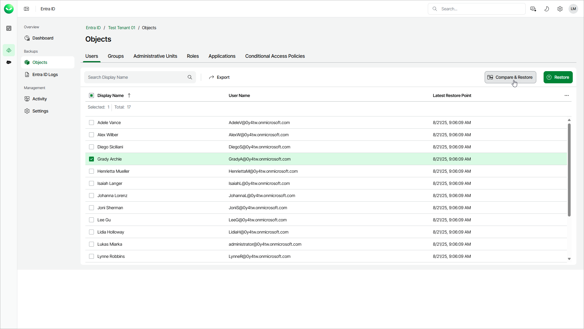 1. Click Compare & Restore.