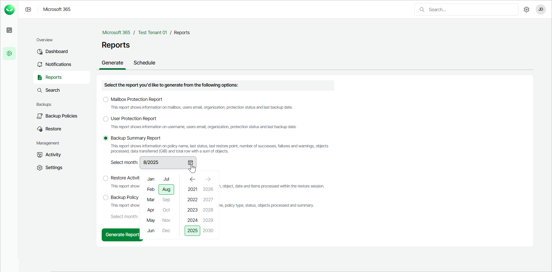 - Backup Summary Report. This report summarizes backup information for the specified month.