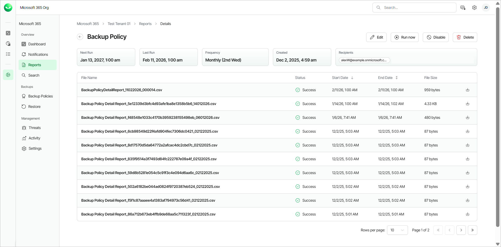 - Recipients. The email recipients of the scheduled report.