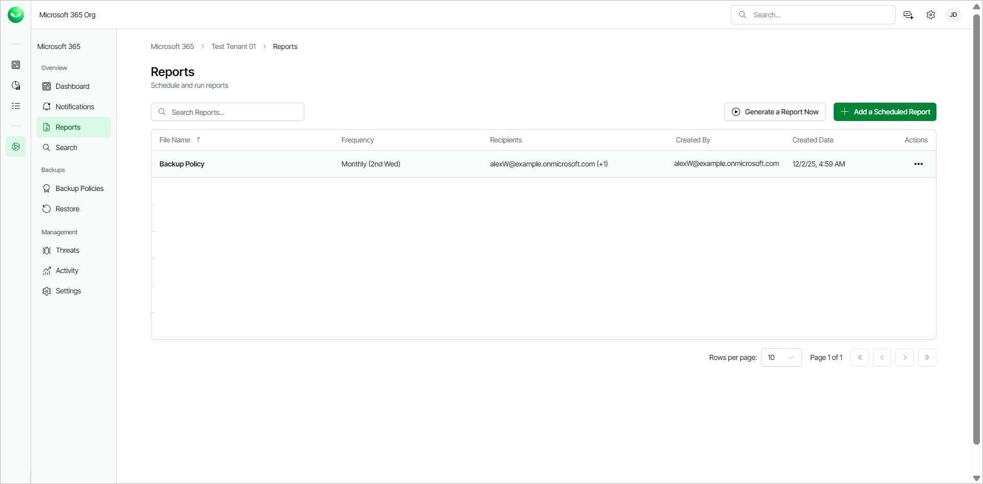 In Reports, you can see a list of all the scheduled reports with information about the name, frequency, recipients, who created the report and the date it was created.