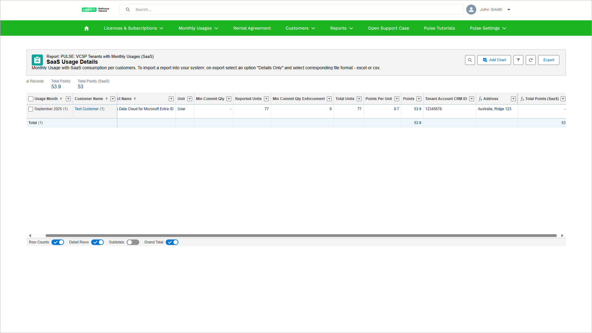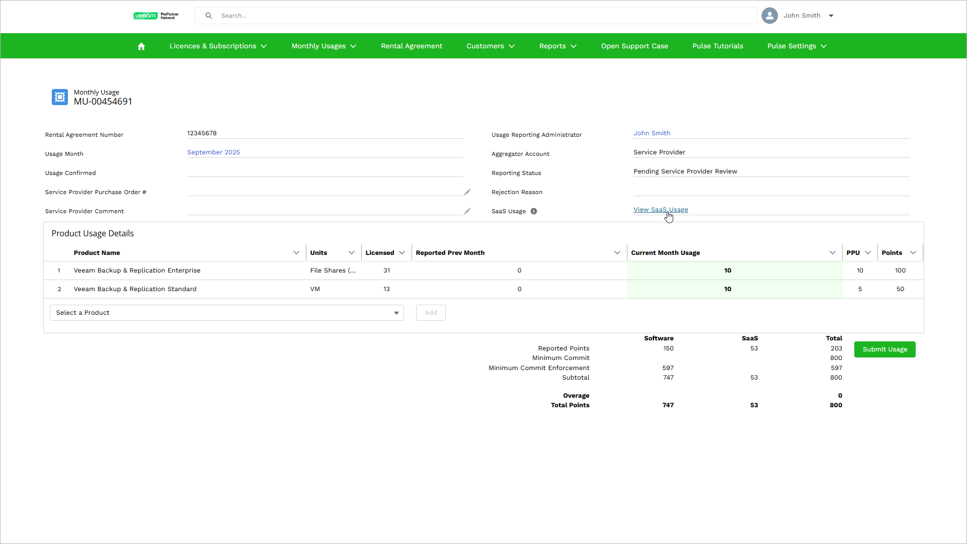- To view monthly SaaS usage per customer, click View SaaS Usage. VCSP Pulse will open the SaaS Usage Details page in a new tab.