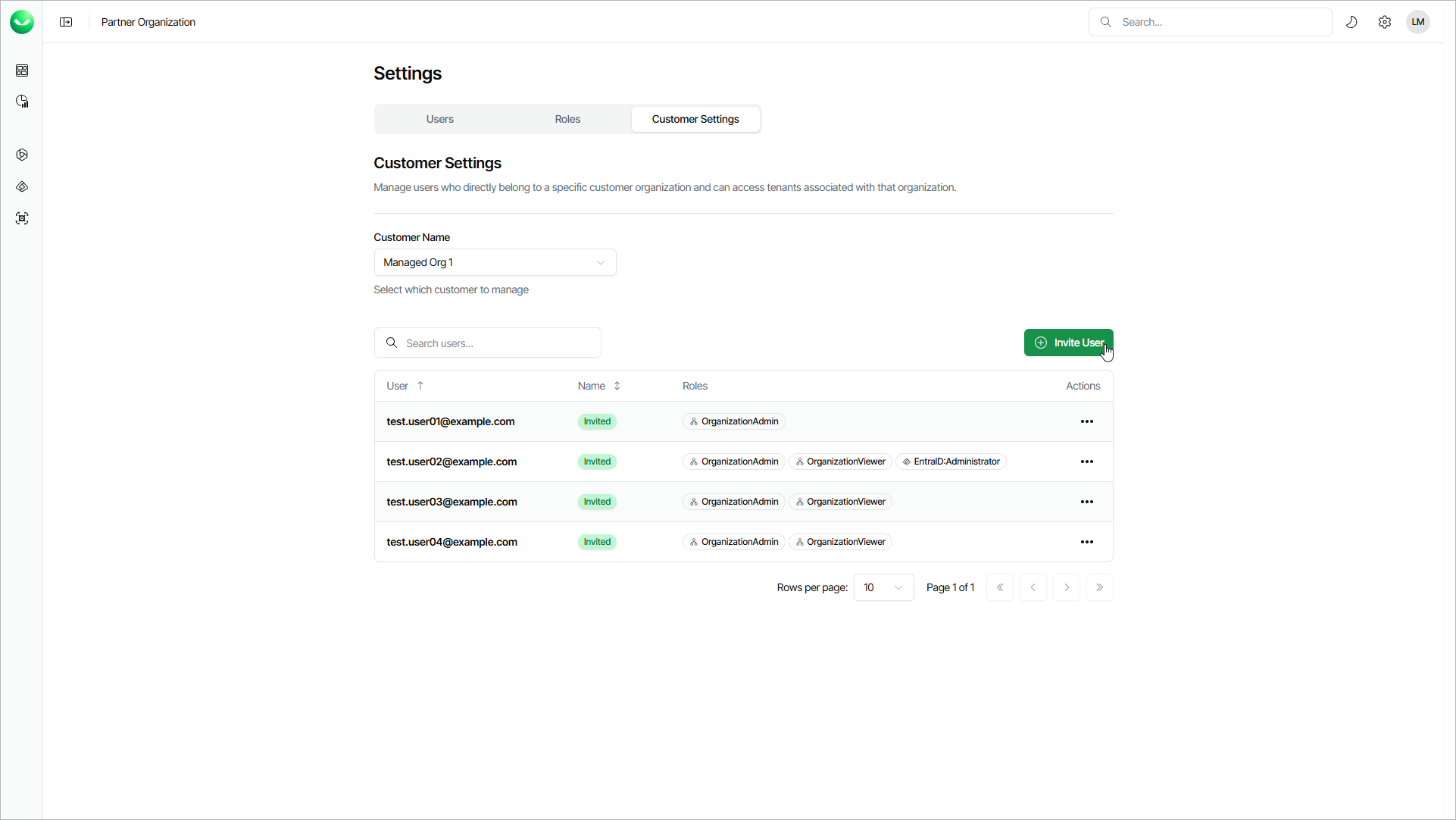 - From the Customer Name drop-down list, select a customer to which you want to invite a user.