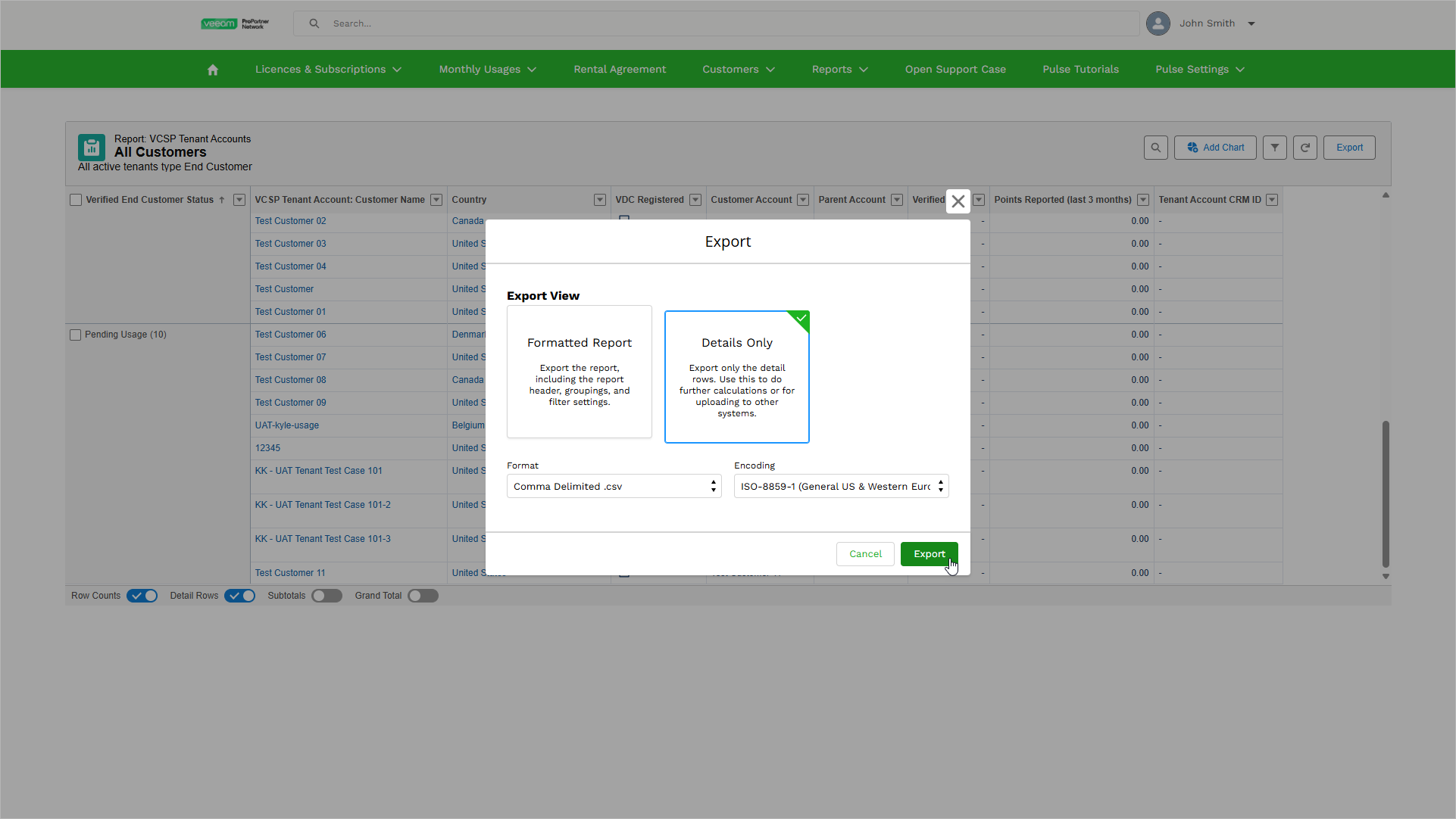 VCSP Pulse allows you to export customer data to an XLSX, XLS and CSV file for further analysis and reporting.