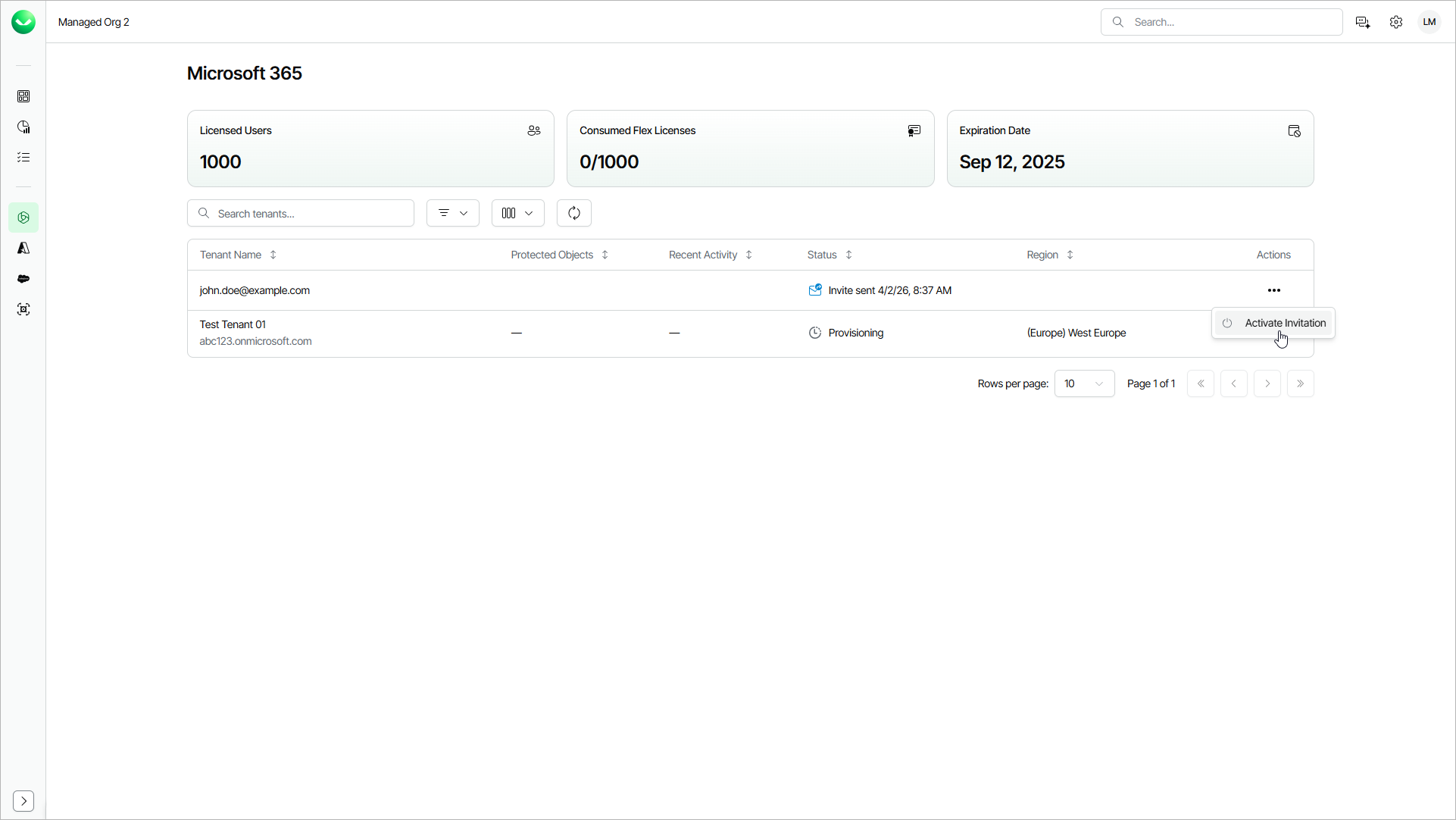 After your customer receives the invitation, they must activate it to add a workload tenant and complete the onboarding.