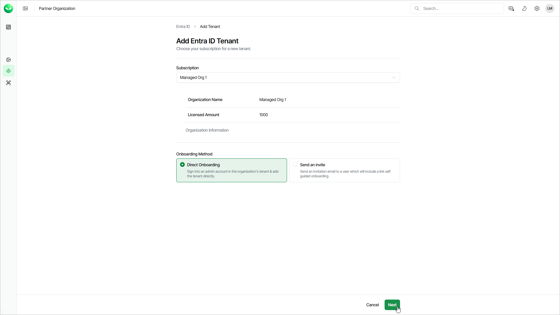 - Click Next. Veeam Data Cloud will launch the Add Entra ID tenant wizard.