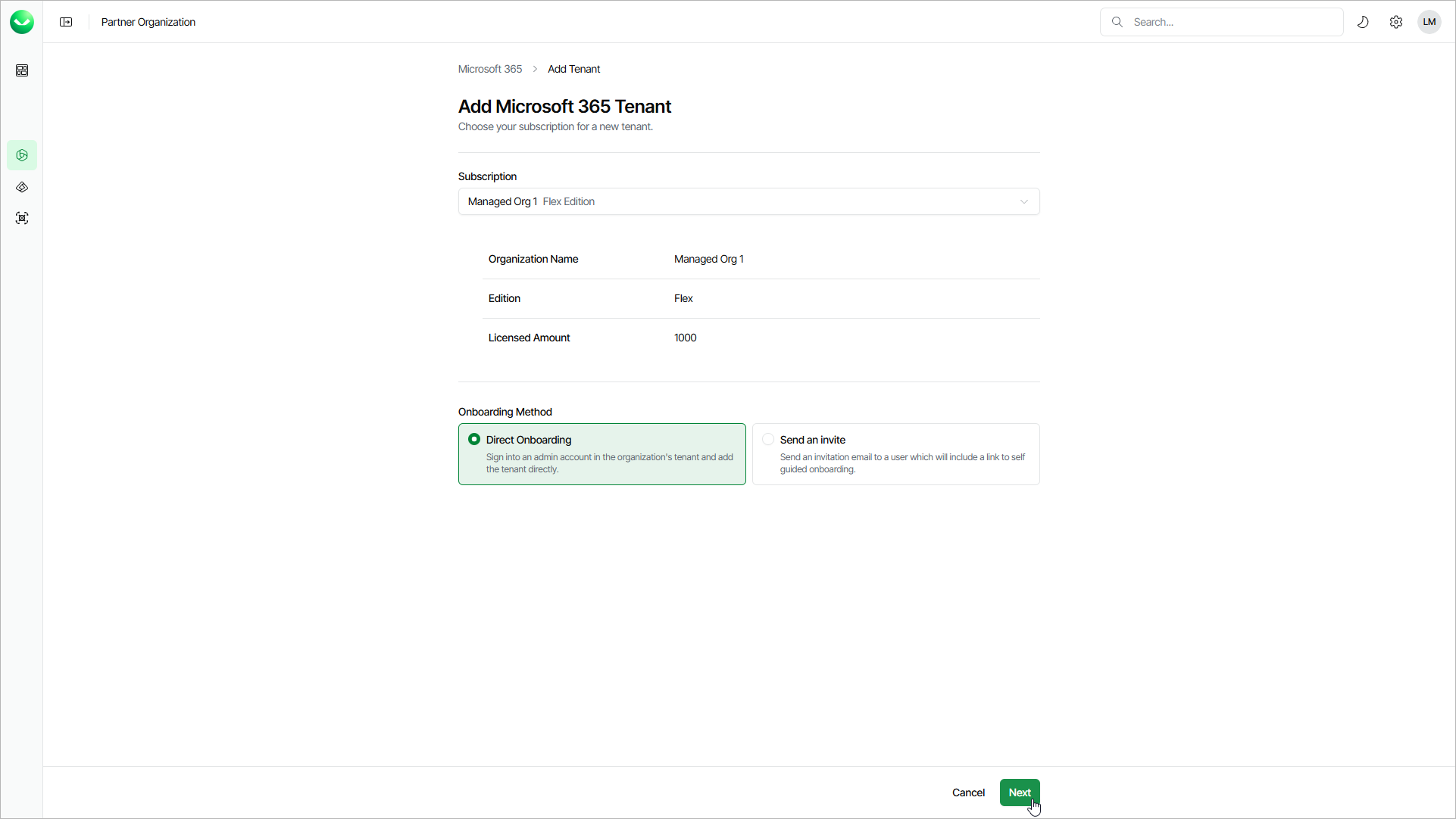 - Click Next. Veeam Data Cloud will launch the Add Microsoft 365 tenant wizard.