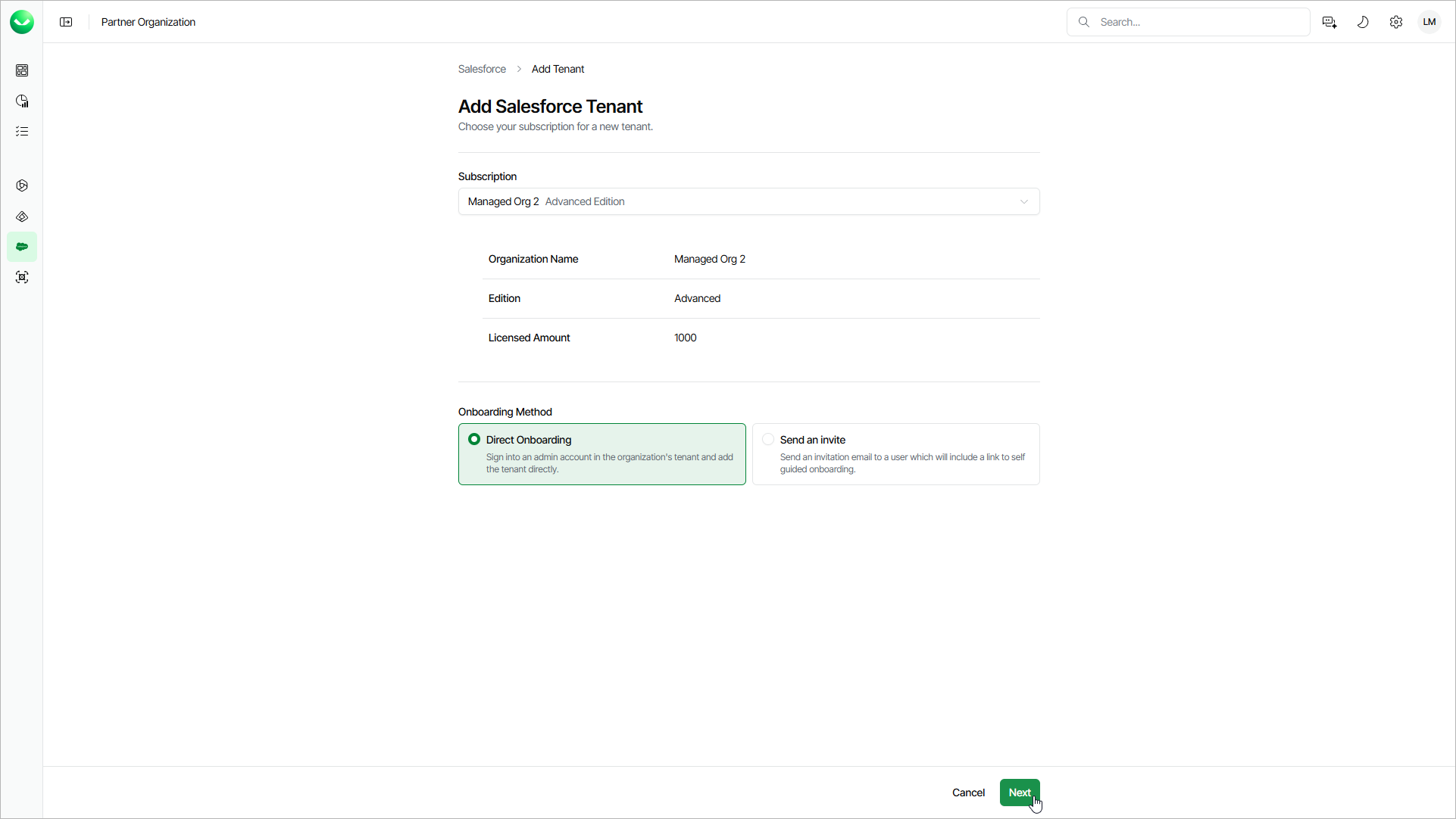 - Click Next. Veeam Data Cloud will launch the Add Salesforce Tenant wizard.