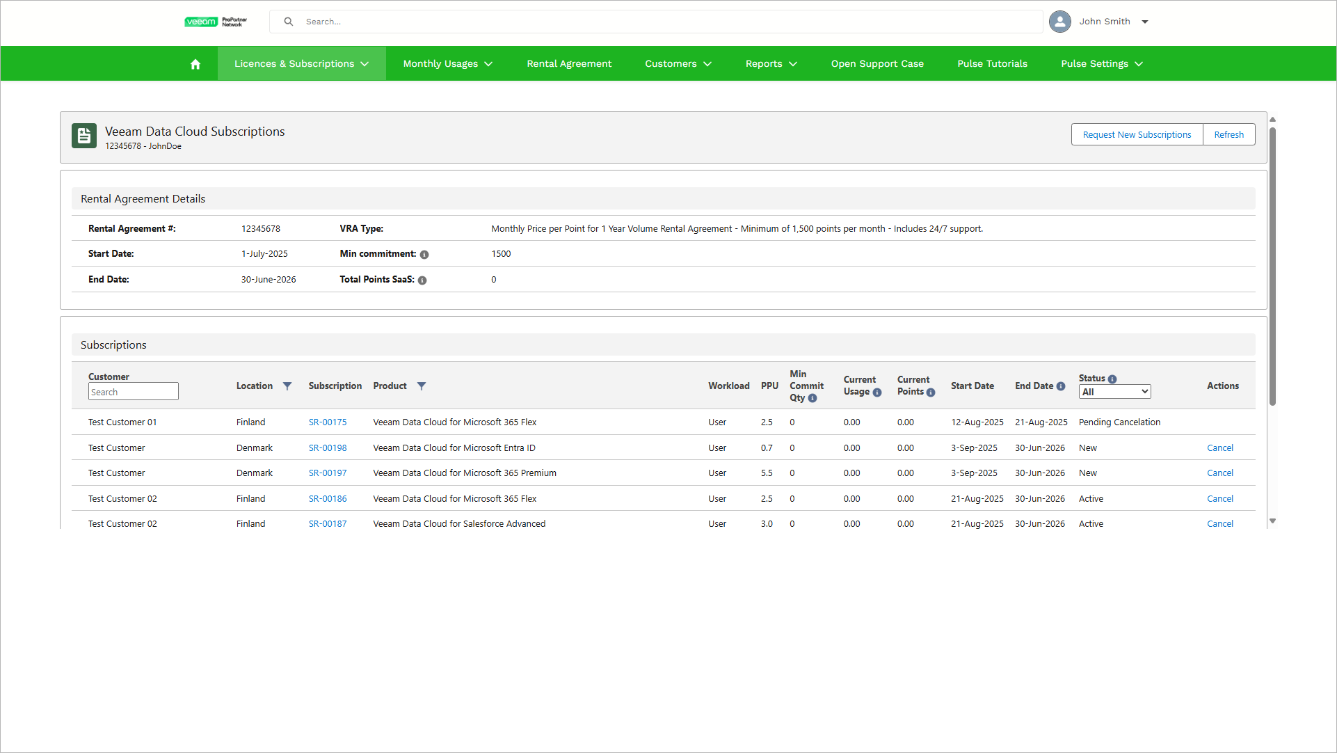 In VCSP Pulse, you can view details about your rental agreement and all subscriptions assigned to your customers.