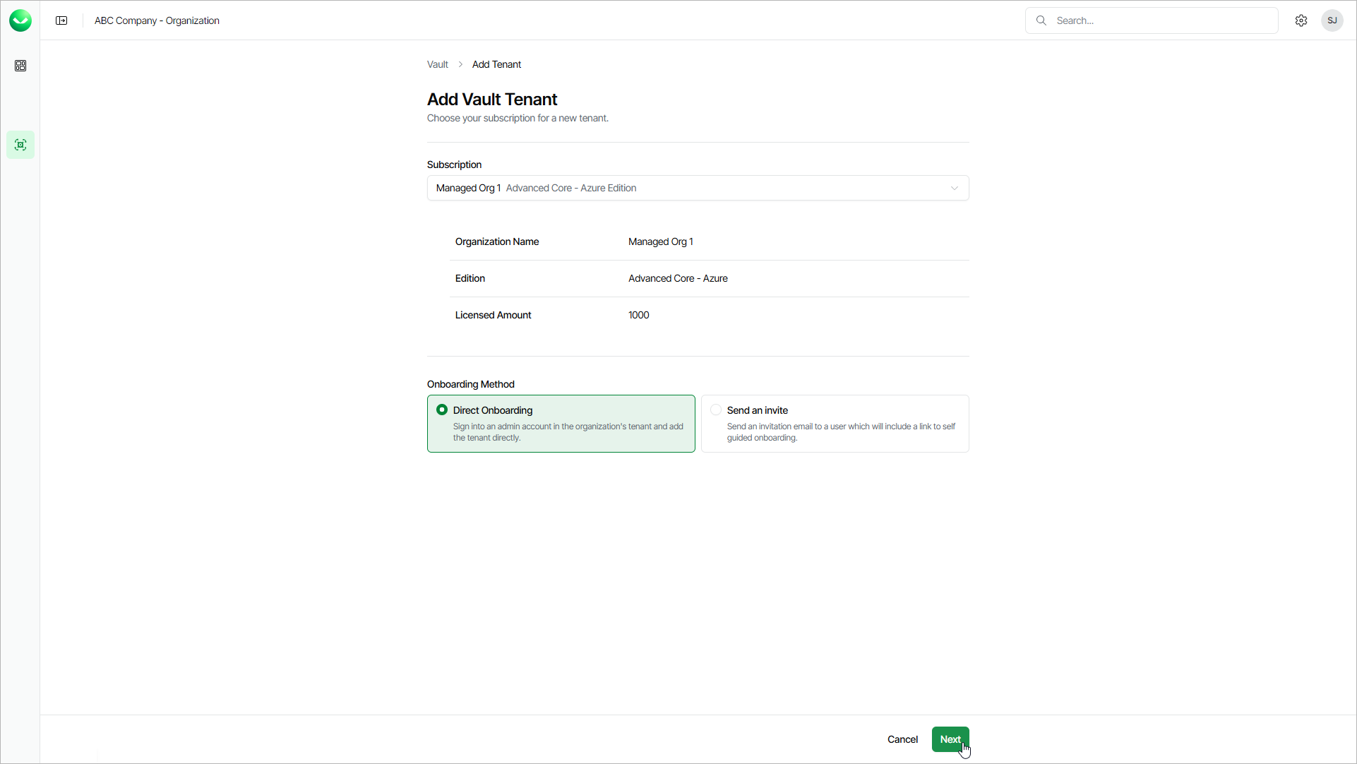- Click Next. Veeam Data Cloud will launch the Add New Tenant wizard.