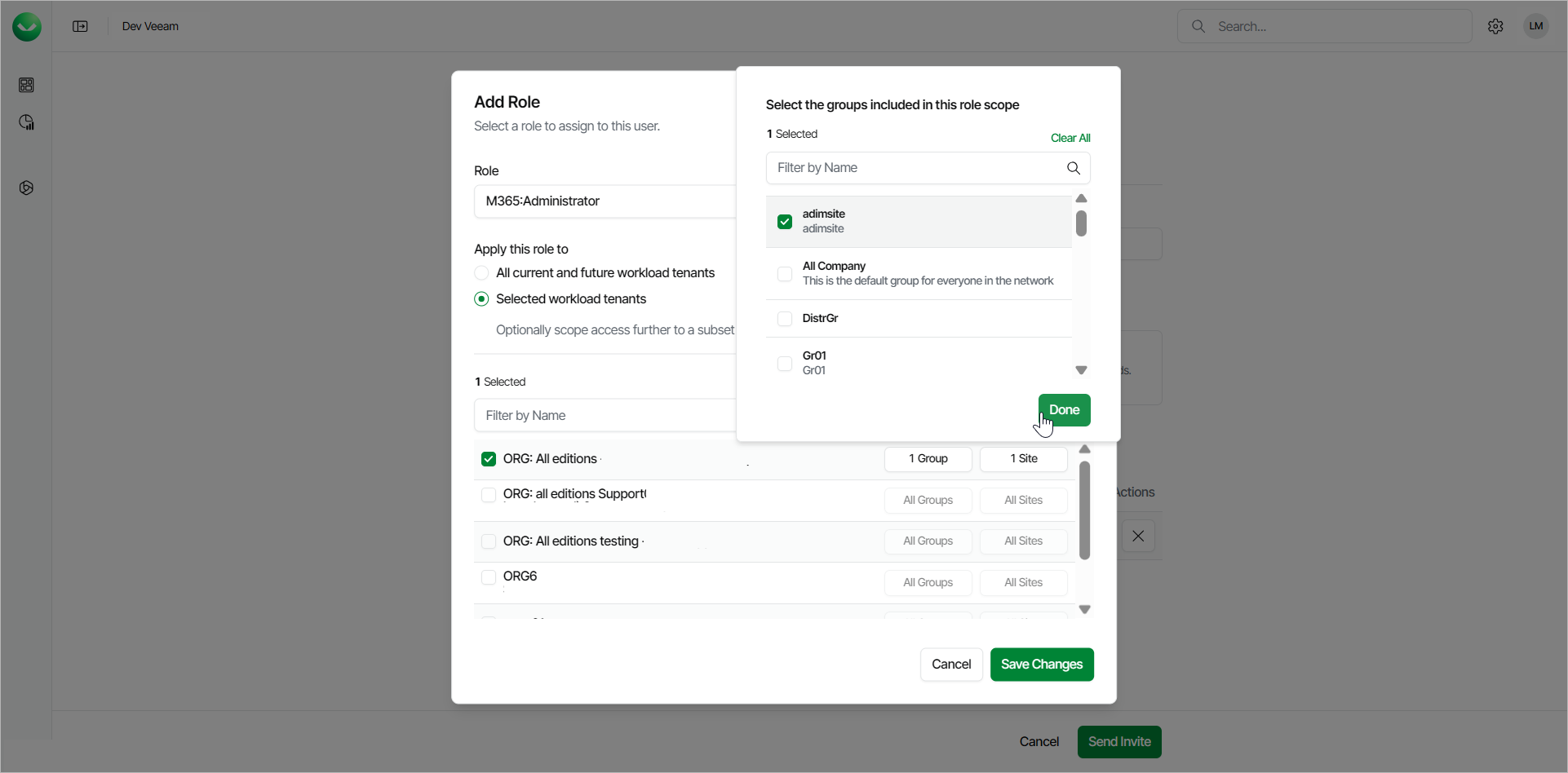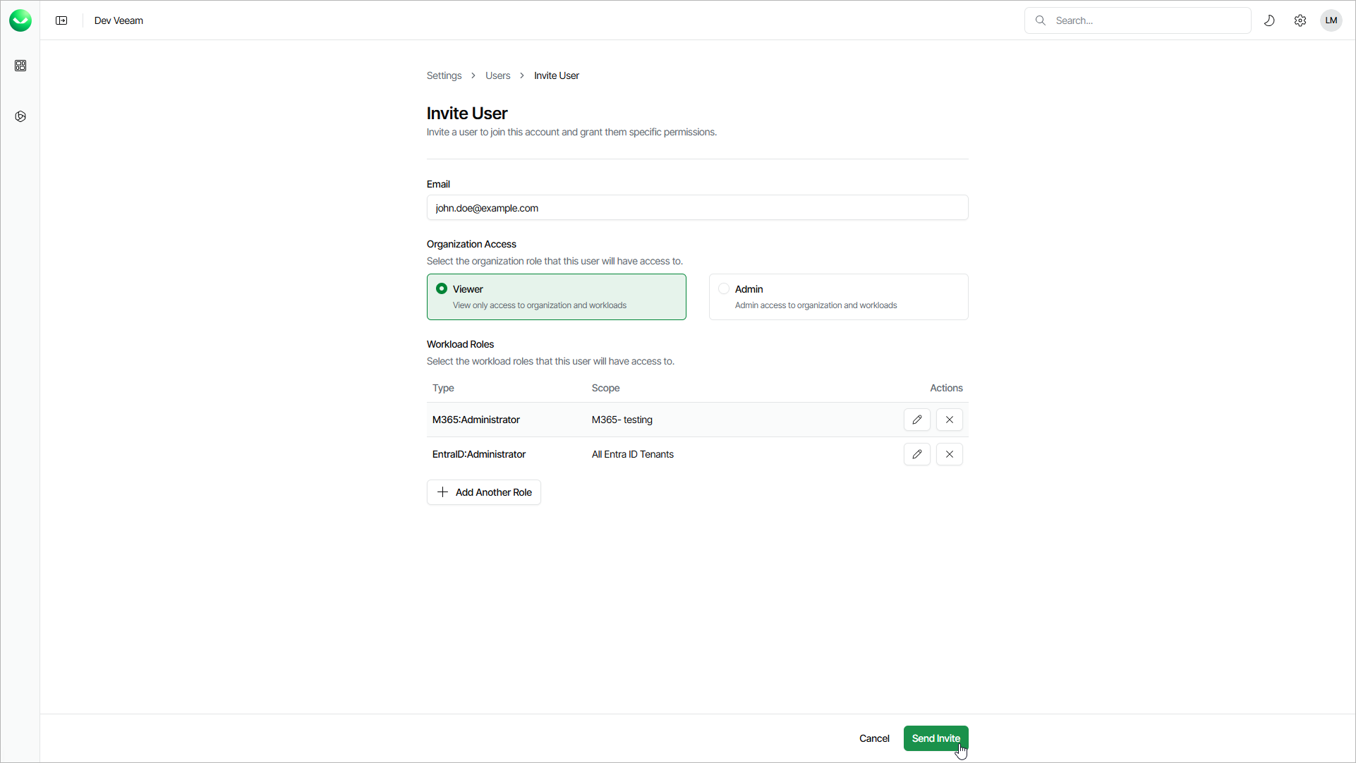 Veeam Data Cloud allows you to add users, assign roles to them, and specify a role scope that defines which tenants the user can access. When you add a user to your Veeam Data Cloud organization, the user will receive an email with an invitation link.