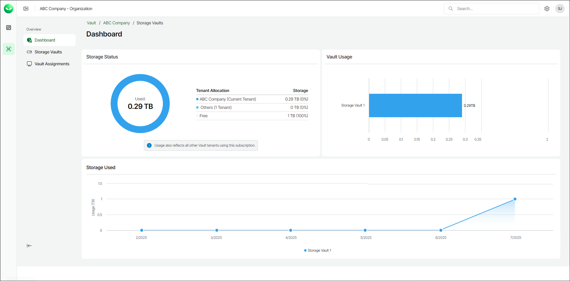 You can view individual graphs for each storage vault. To learn more, see Viewing Storage Vault Details. |