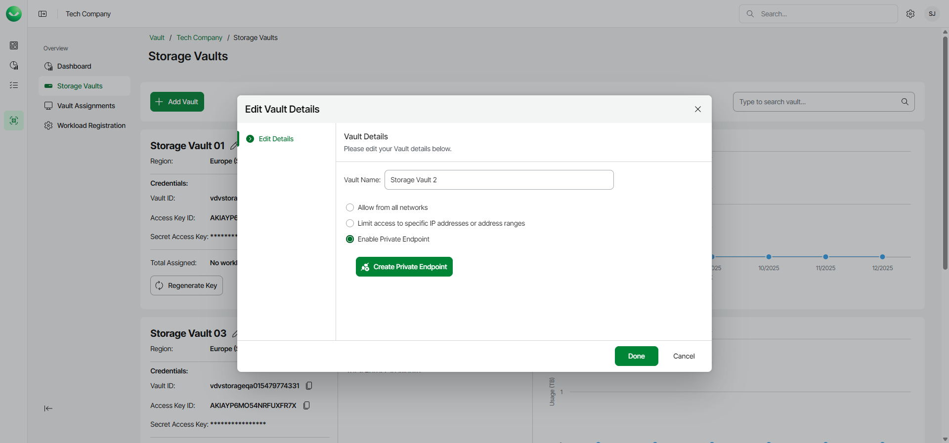 - On the Storage Vaults page, locate the storage vault for which you want to create the private endpoint.