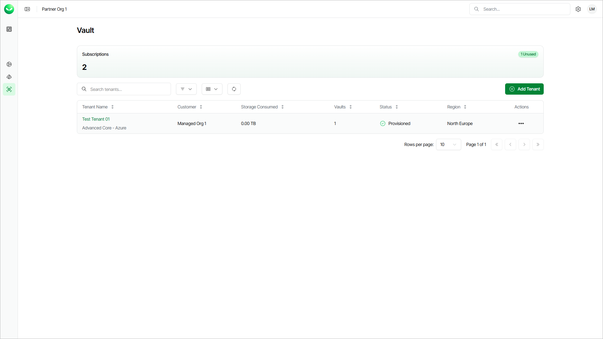 The subscription edition that is used for the tenant is listed below the tenant name. To learn more, see Veeam Data Cloud Vault Product Editions.