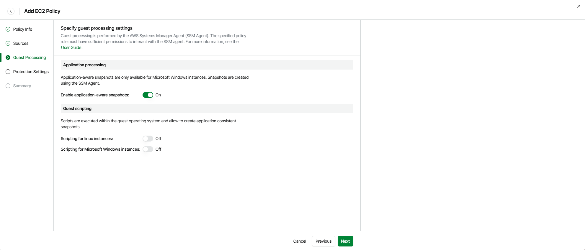 - Application-aware processing is available only for EC2 instances running Microsoft Windows Server 2008 R2 or later.