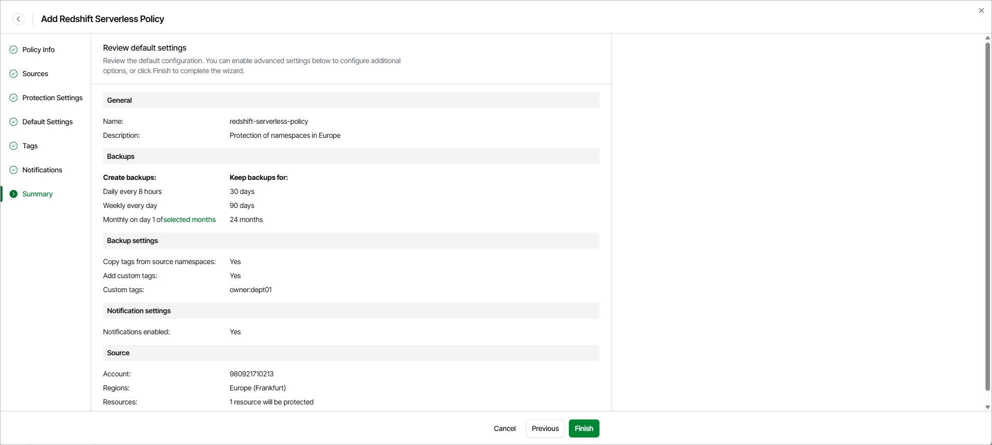 Step 8. Finish Working with Wizard [This step applies only if you have enabled advanced settings at the Summary step of the wizard]At the Summary step of the wizard, review configuration information and click Finish.