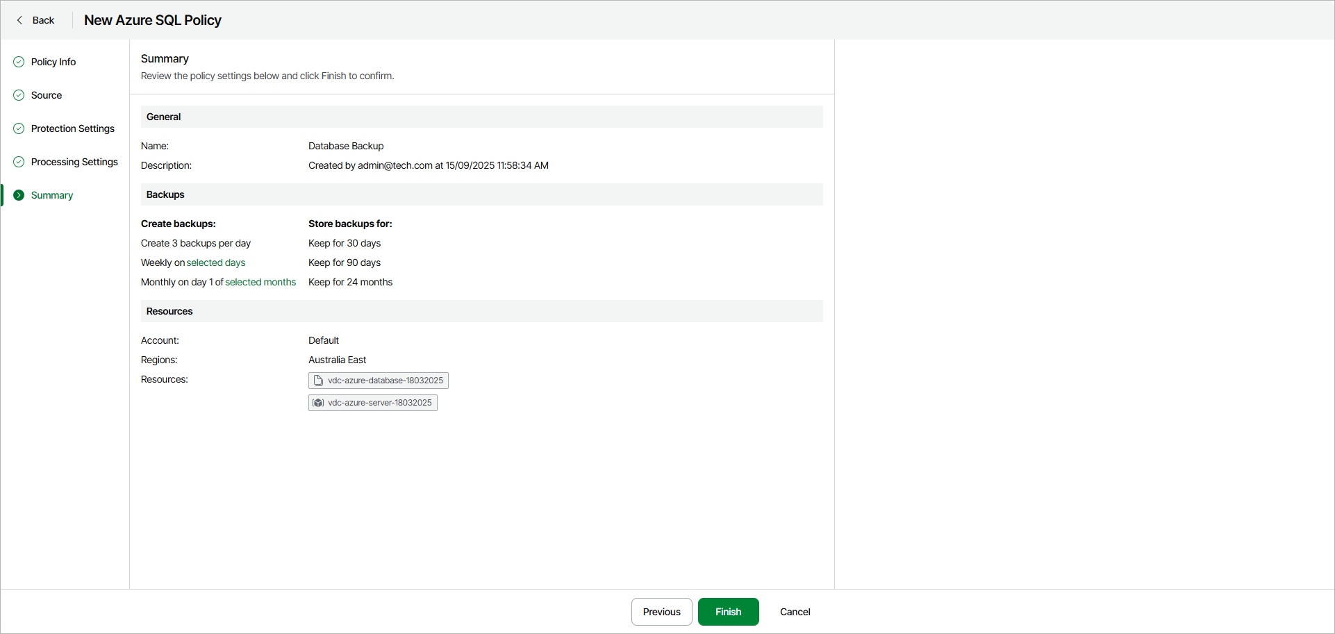 Step 6. Complete Policy Configuration At the Summary step of the wizard, complete the backup policy configuration, review backup policy settings and click Finish.
