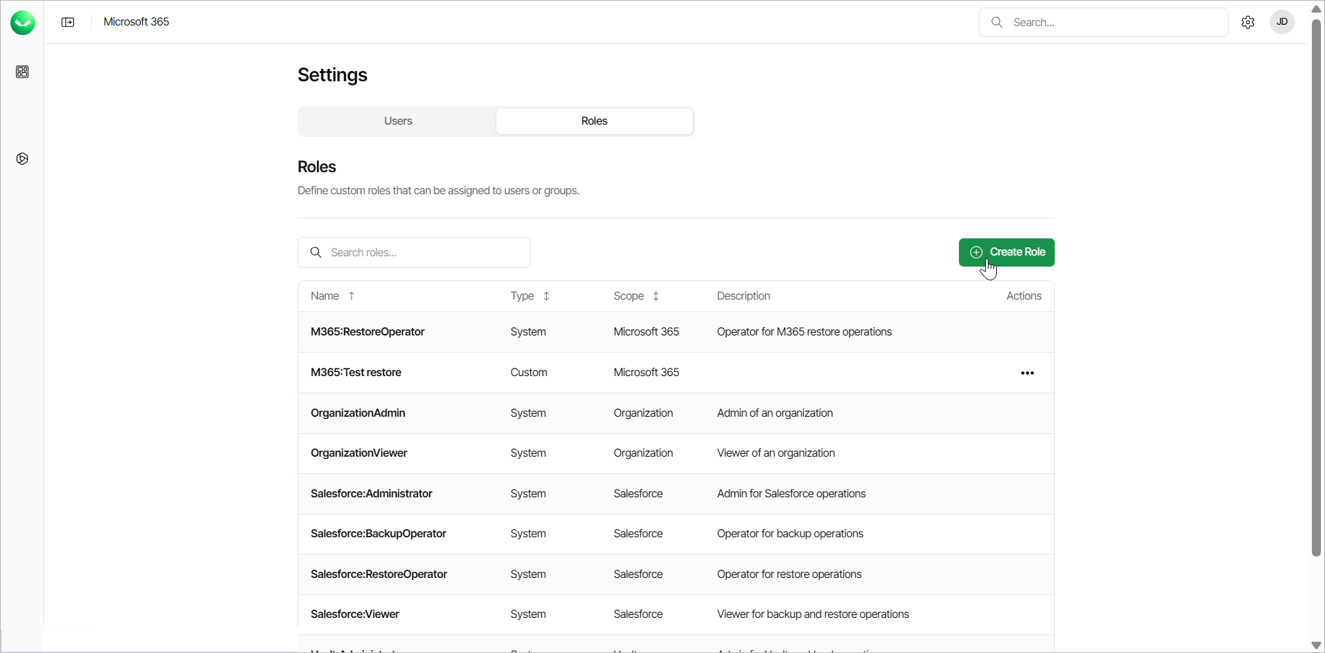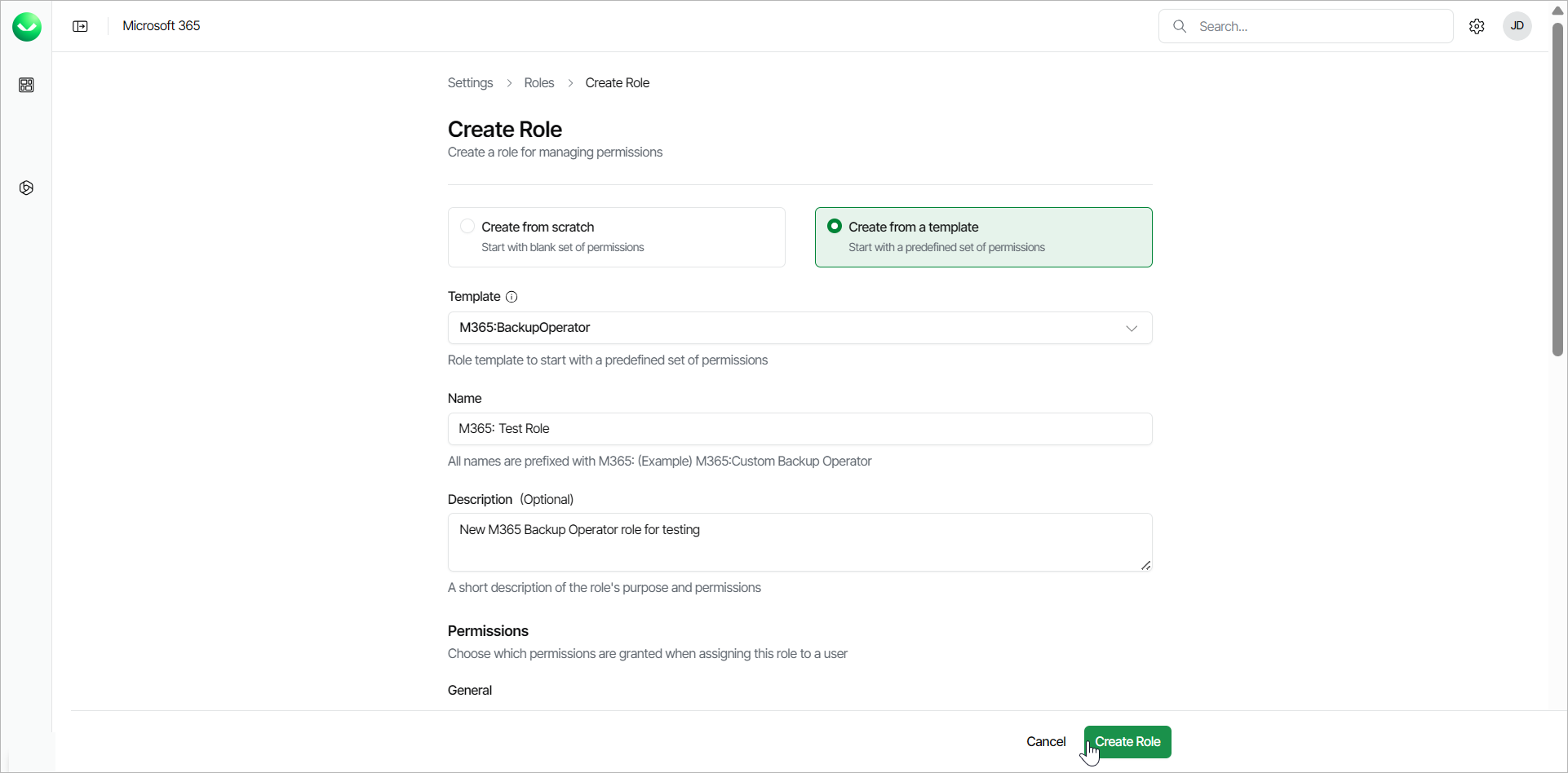 Veeam Data Cloud for Microsoft 365 offers the following 3 user role templates when you create a new role: