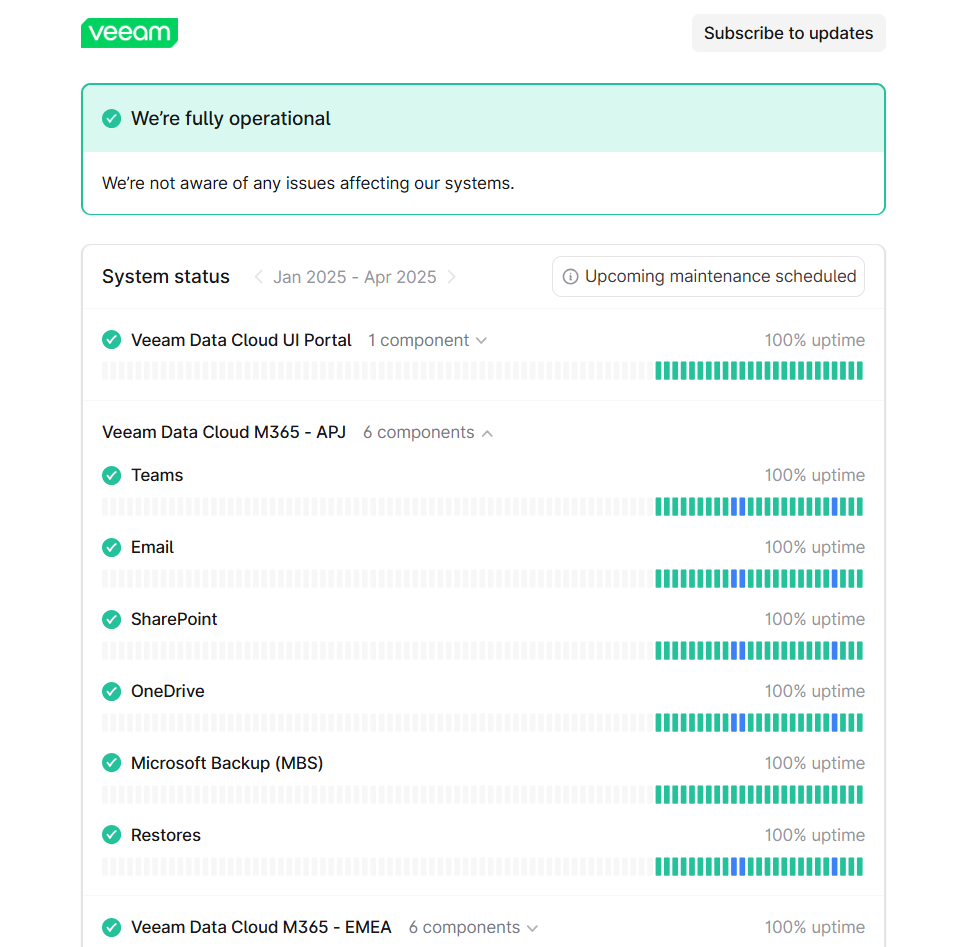 You can view the status of Veeam Data Cloud for Microsoft 365 services. To do this, open this Veeam webpage in your web browser.