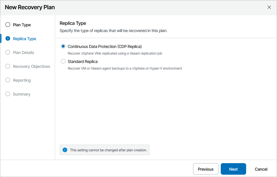 Step 2. Choose Replica Type At the Type step of the wizard, select the Continuous Data Protection (CDP Replica) option.
