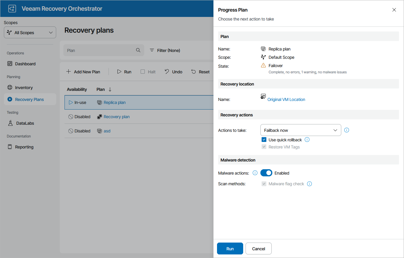 - Select the plan and click Run.