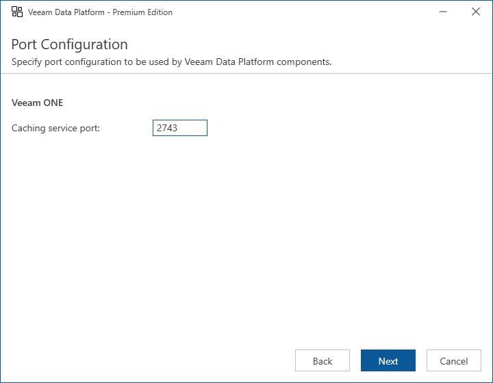 Step 11. Specify Caching Port (2) At the Port Configuration step of the wizard, customize the Veeam caching service port and click Next.