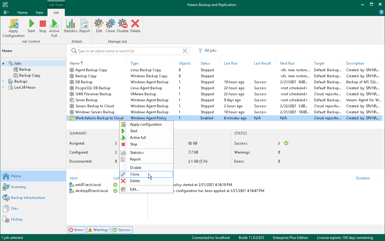 バックアップポリシーのクローン作成機能は、Veeam Backup & ReplicationのEnterprise EditionとEnterprise Plus Editionでのみ使用可能です。 |