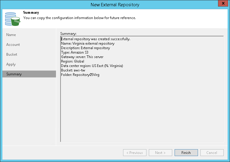 ウィザードの[Summary]ステップで、エクスターナルリポジトリ設定を確認して、[Finish]をクリックします。